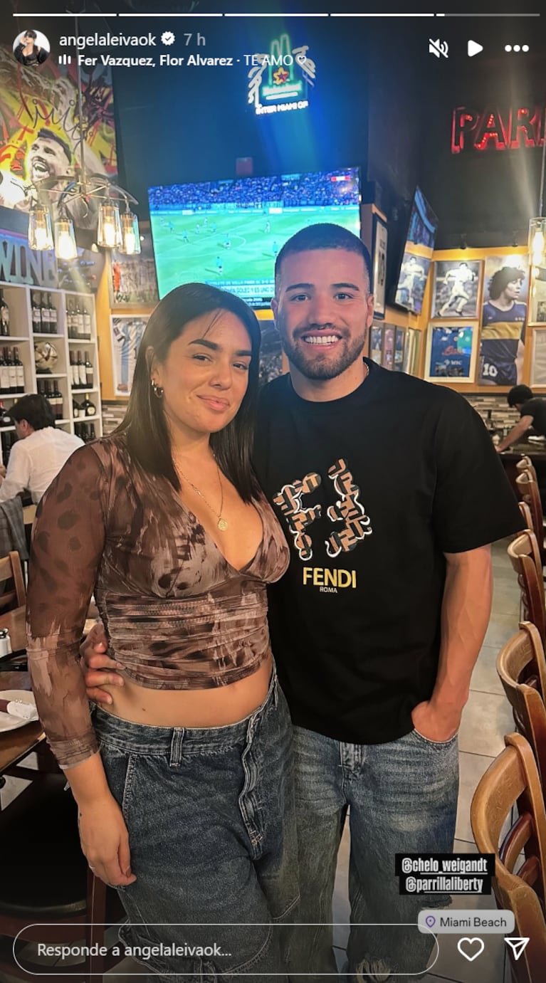 ÁNGELA LEIVA SE MOSTRÓ ENAMORADA DE CHELO WEIGANDT EN MIAMI