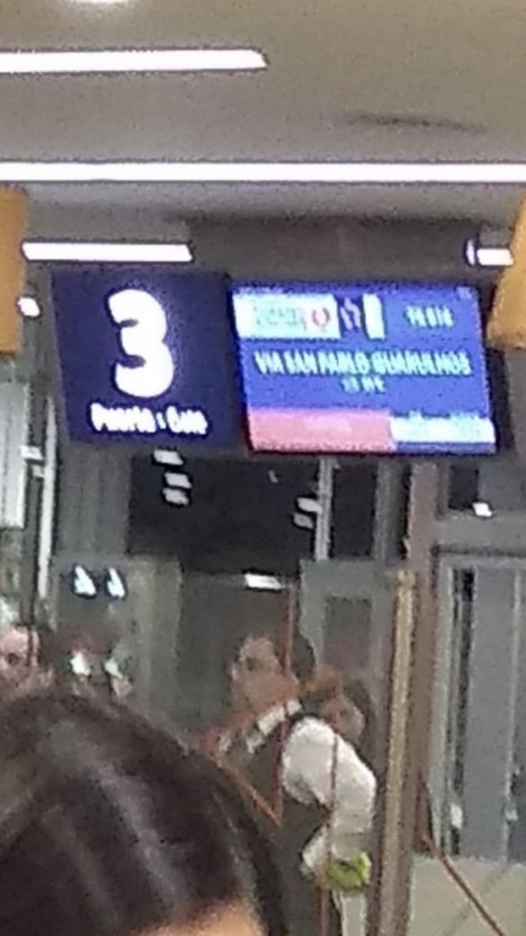 “Volvió a San Pablo”, twitteó el conductor de Los Ángeles de la mañana junto a fotos de Darthés unos instantes antes de subirse al avión, donde se lo puede vestido con una campera inflable gris y hablando por celular.
