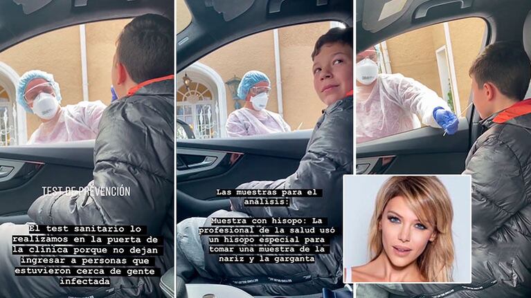 "El test sanitario lo realizamos en la puerta de la clínica porque no dejan ingresar a las personas que estuvieron cerca de la gente infectada. Las muestras para el análisis son con hisopo. La profesional de la salud usó un hisopo especial para tomar una muestra de la nariz y de la garganta", describió la modelo, mostrando en Instagram los videos de la cuidadosa y responsable realización del test.