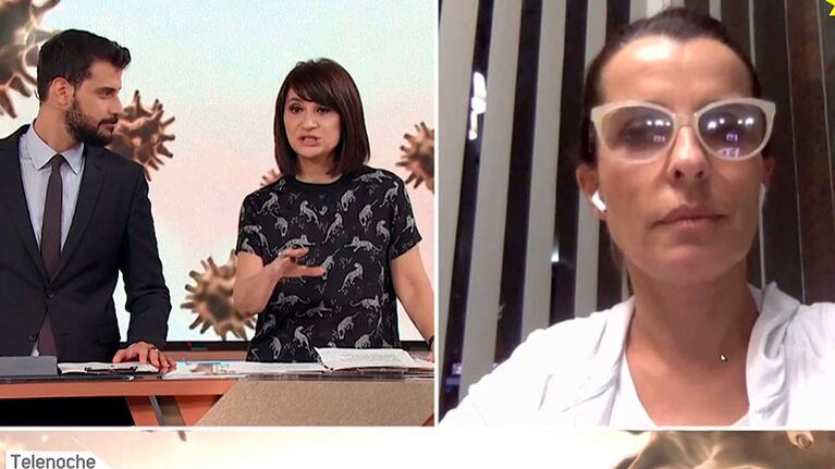“Es una cuarentena preventiva porque mis hijos estuvieron de viaje. Estuvieron en zonas riesgosas por lo cual por prevención, primero fue la facultad, luego fue el trabajo nuestro, por lo tanto nos han pedido que, hasta tanto termine los 15 días, estemos en casa”, explicó la conductora en el noticiero central de eltrece.