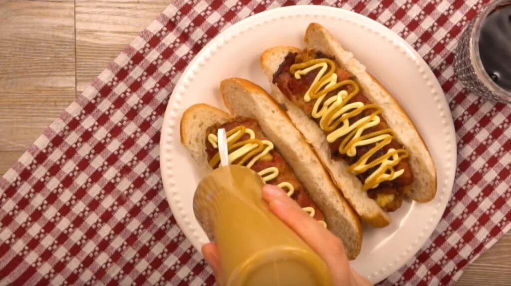 5) Dorar de todos los lados, disponer sobre el pan y servir con kétchup y mostaza.