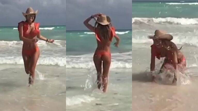 En uno de sus últimos posteos, Carolina mostró su costado más divertido al compartir un video en el que aparece corriendo en la orilla del mar -¡luciendo una bikini infartante!- hasta que se cae de rodillas riéndose.