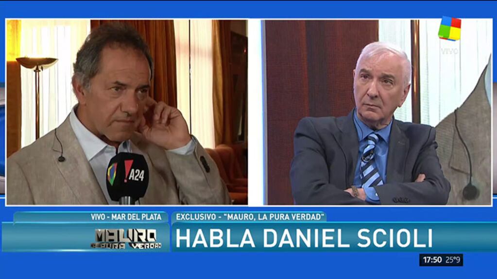 “Mi visita a Mar del Plata es por trabajo. Por respeto a la editorial vine a la presentación del libro”, se limitó a contestar Scioli. “¿Estás bien de ánimo?”, le consultó el conductor, pero el político se mostró intransigente: “No quiero ser repetitivo. Te mando un abrazo muy grande”.