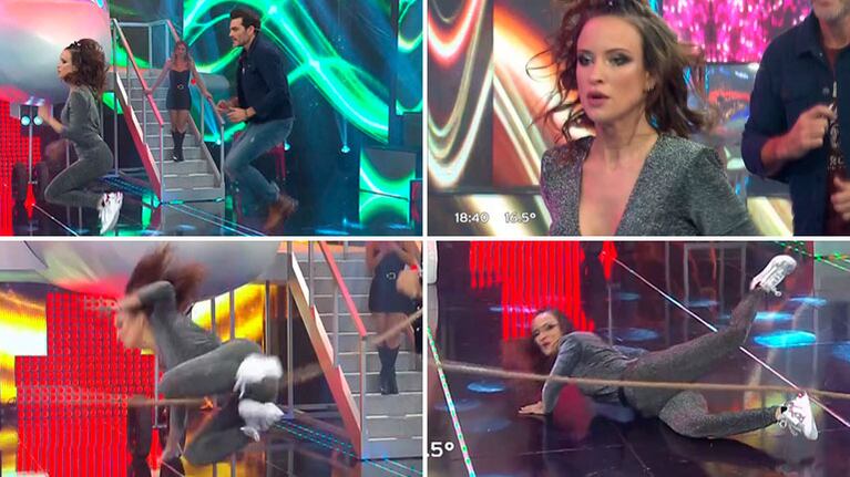 Hasta que, en un momento, Camila comenzó a perder el equilibrio, su cuerpo se desacomodó, no pudo seguir el ritmo y la cuerda le impactó de lleno en su tobillo izquierdo. Pese a la caída, los reflejos de la modelo fueron súper veloces y alcanzó a poner las manos para evitar que su cara pegue contra el suelo.