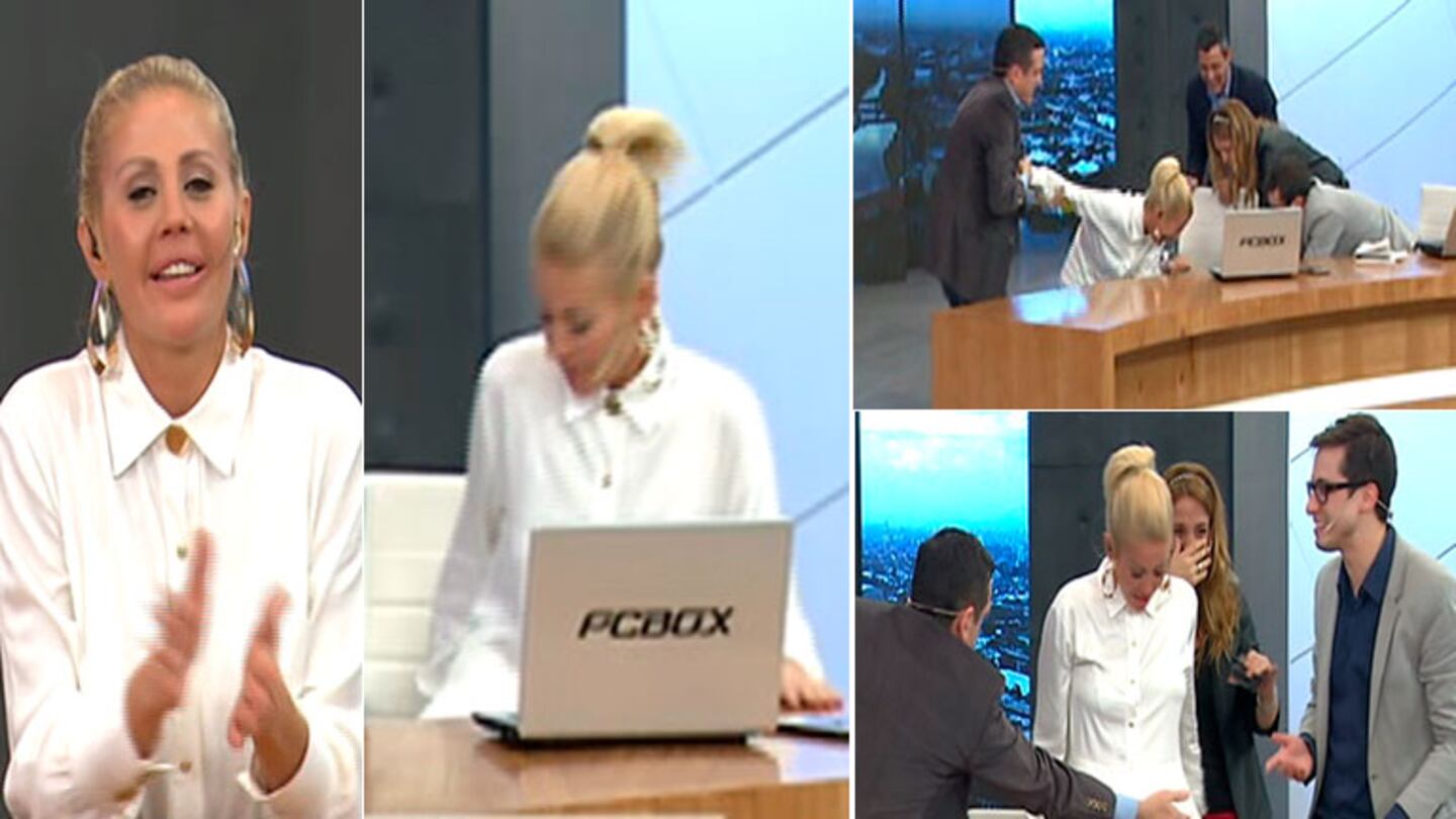 En medio del abordaje de una noticia sobre Jimena Barón, un compañero de Barbie ingresó a escena para sacarle tarjeta amarilla por la información que estaba dando, ella hizo un movimiento brusco en la silla y terminó cayéndose redonda al piso.