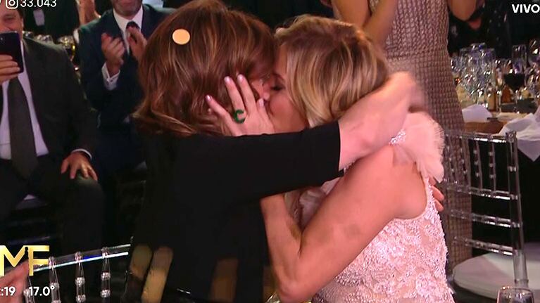 Finalmente, Carla se alzó con el premio y al escuchar su nombre se fundió en un tremendo beso en la boca con Nancy.