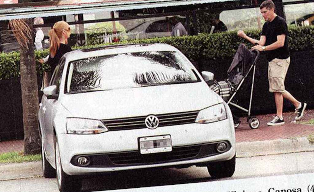 La revista Paparazzi la encontró en una de esas tardes cotidianas cuando se organiza a la perfección con su novio para trasladar a la pequeña: él carga el cochecito en el auto y el bolso con las provisiones para Martina, y ella la lleva en brazos.