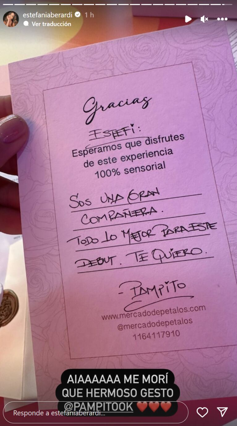 Muy agradecida, Estefi compartió a través de sus stories de Instagram la imagen del obsequio que le mandó Pampito.