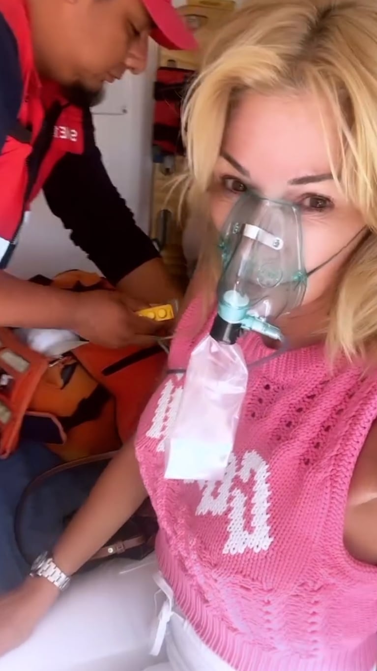 “Apunada en la ambulancia. Saturando muy bajo y con mucho dolor de cabeza”, contó la panelista de LAM en una de las historias que hizo en Instagram, en la que se la ve con una mascarilla, recibiendo oxígeno.