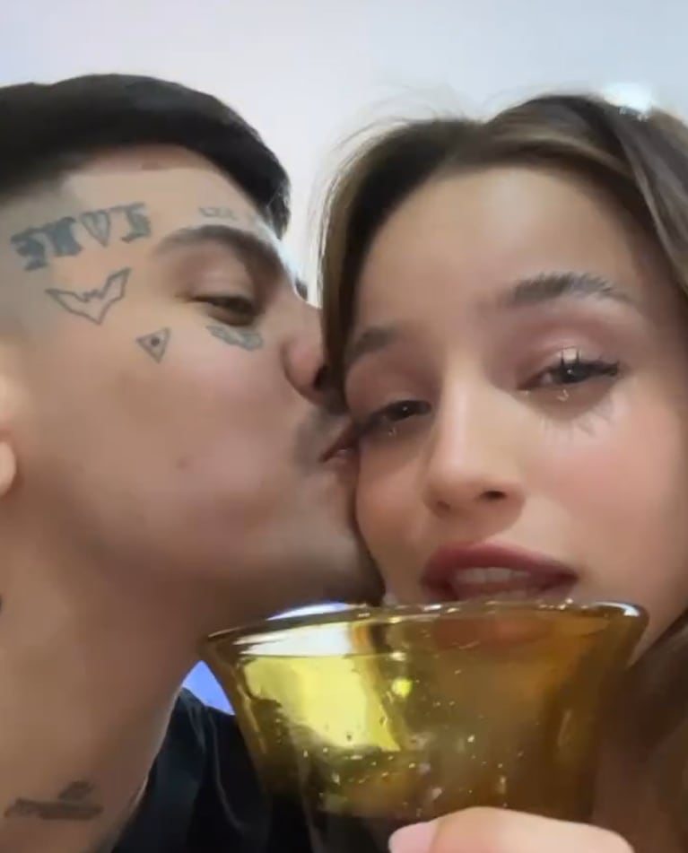 “Feliz año a todos”, escribió la artista, al pie del video que compartió a través de su stories, en el que la muestra hablándole a la cámara mientras su novio, además de hacer todo tipo de gestos, le da tiernos besos en la mejilla. ¡Acaramelados!