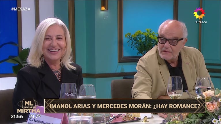 Imanol Arias piropeó a Mercedes Morán en la mesa de Mirtha Legrand del sábado por la noche después que la conductora les preguntara si están juntos o no.