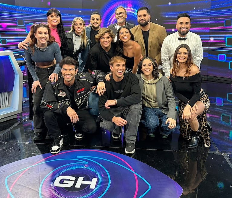 Bautista, Denisse, Lucía, Emma y Nicolás junto al equipo de GH Uruguay.