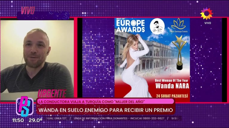 Respecto al viaje que tenía programado la conductora con el cantante, Ozgur dijo: "Creo que L-Gante no va a viajar por su accidente, es muy grave, creo que Wanda Nara tiene planeado viajar a Estambul sola para recibir el premio”.