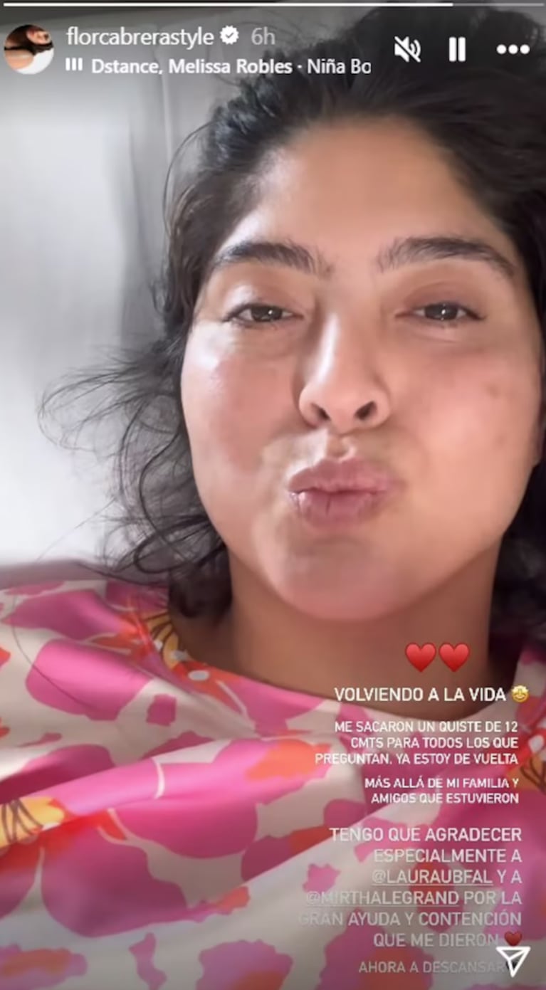 “Volviendo a la vida, me sacaron un quiste de 12 centímetros y ya estoy de vuelta. Más allá de mi familia y amigos, tengo que agradecer especialmente a Laura Ubfal y a Mirtha Legrand por la gran ayuda y contención que me dieron”, cerró.
