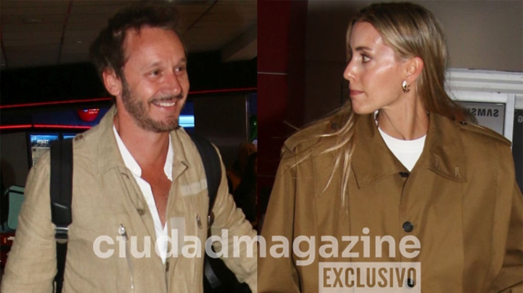 Así como también lo hicieron ambos en el aeropuerto internacional, con sus atuendos engamados, él con jeans gris, zapatillas al tono y campera camel, y ella en la misma gama de colores, combinando con un verde y calzados animal print.