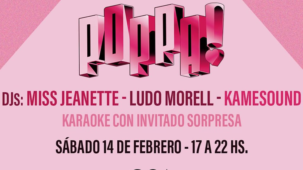 Con una propuesta pensada para venir en pareja, con amigos o incluso solo, Fiesta Poppa! promete un verdadero flechazo pop. La música estará a cargo de sus DJs residentes: Miss Jeanette, Kamesound y Ludo Morell —baterista de Miranda!—, quien marca su esperado regreso a la cabina luego de años de trayectoria en la noche porteña.