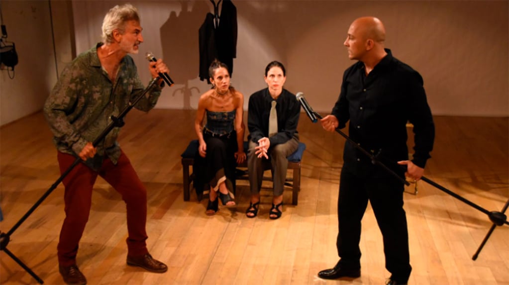 Cuatro intérpretes —Gonzalo Martínez Castro, Julieta Bottino, Daniela Caldora y Ulises Attadia— asumen un desafío actoral que expone contradicciones, deseos y temores en un contexto donde lo íntimo dialoga con lo social.