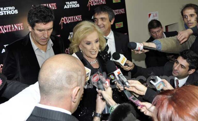 “Es un honor ser la madrina de esta teatro que tantos recuerdo tengo, donde debutó Susana Giménez como vedette”, aseguró Mirtha. Y agregó: “Antes esto era un cine, se llamaba Astor y yo venía a ver películas con mis hermanos”. Pero no pudo obviar el tema que desde hace semanas está en la primera plana de todos los diarios: “Estoy pasando un momento difícil, como todos saben, pero no dejo de estar emocionada y contenta de estar acá. No es una fiesta por que no estoy para fiestas, pero sí para un acontecimiento como éste”.