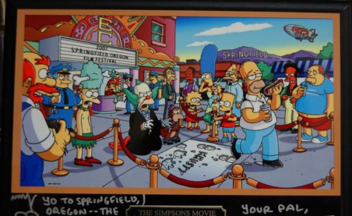 Revelado el asunto, la ciudad ya ha incorporado a los Simpsons en sus atracciones tusrísticas. Por ejemplo, el museo de Springfield tiene un sillón similar al que aparece al comienzo de los capítulos de la serie y una placa conmemorativa del estreno de la película.