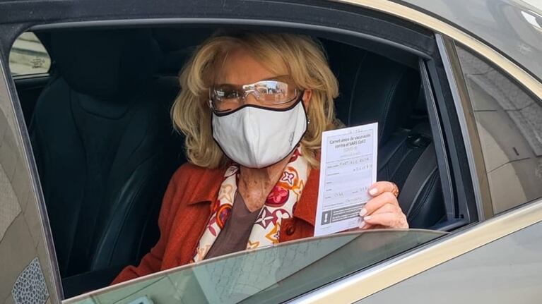 “Hoy me aplicaron la vacuna contra el COVID-19, estoy muy agradecida por esta posibilidad”, comenzó diciendo la diva de los almuerzos, de 94 años, en su cuenta personal de Twitter, junto a una foto en la que se la ve en un auto con su barbijo puesto y el certificado de la vacuna.