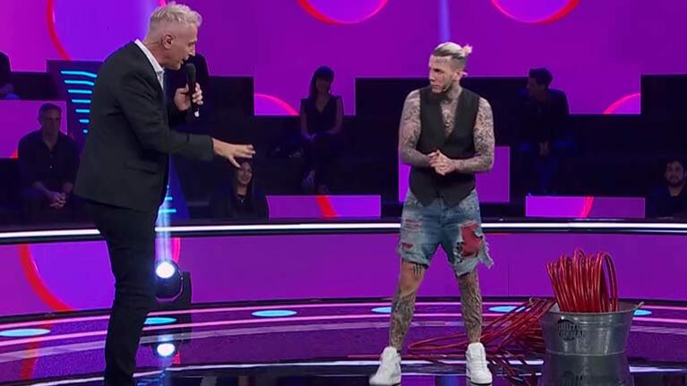 Este domingo en Minuto para ganar Marley y Vicky Xipolitakis recibieron como invitado a Alex Caniggia, que sorprendió con su inusitada habilidad para sortear las pruebas físicas que propone el ciclo. Tras acertar ganar 10 mil pesos, el conductor hizo foco en los innumerables tatuajes del cantante y este explicó qué significan, y mostró un dibujo que mantiene “oculto” y que sirve para “tirotear a los barats”, según sus propias palabras.