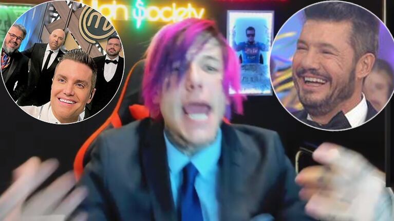 “Gente, ¿me ven en lo de Tinelli o no? ¿Me ven en lo de ‘Marcelen’? ¿Qué dicen? ¿Activo?”, le preguntó a sus seguidores de Twitch el mellizo de Charlotte Caniggia antes de mirar junto a sus fanáticos la emisión del reality culinario donde anunciaban que había sido descalificado.