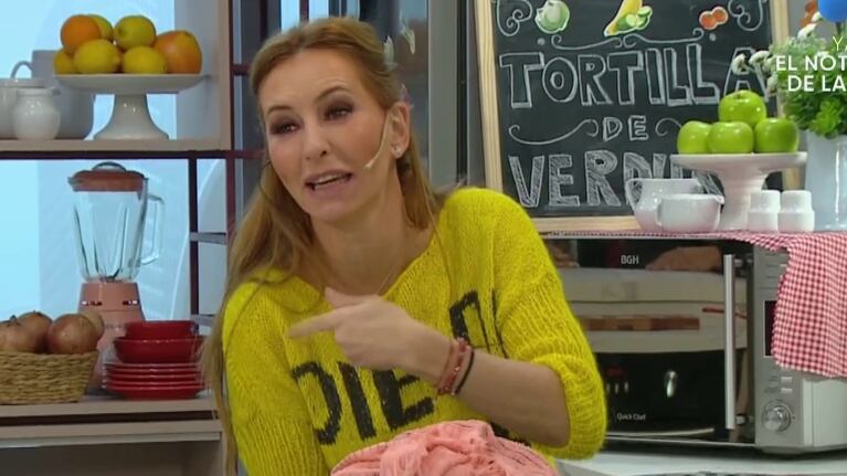 “Me fui a enyesar hasta el hombro y después regresé así”, aseveró la periodista, devenida en cocinera suplente del ciclo de Telefe, sobre aquel momento y la animadora expresó su asombro con mucho humor “Mirá que yo soy ‘raspafiesta’, pero vos me superas”, remató.