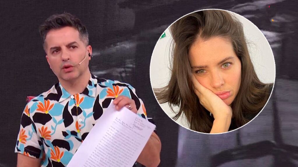 Ángel de Brito: -Esto nos llegó ayer, de parte de nuestra amiga China Suárez y trajimos a nuestro amigo abogado César Carozza para que nos explique... ¡Ay, la nombré ya! ¿La puedo nombrar a la China Suárez?