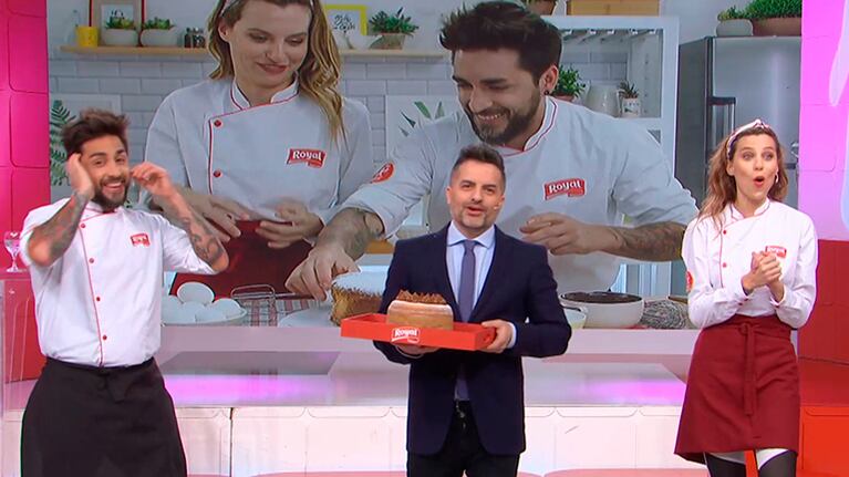 Por eso la mañana de eltrece se vió intervenida por el dúo formado por Valentina Salezzi y Lucas Escobar, cuando ingresaron a los estudios de LAM para regalarles a Ángel de Brito y sus angelitas una Torta Royal por el ¡#FelizNoCumpleaños!