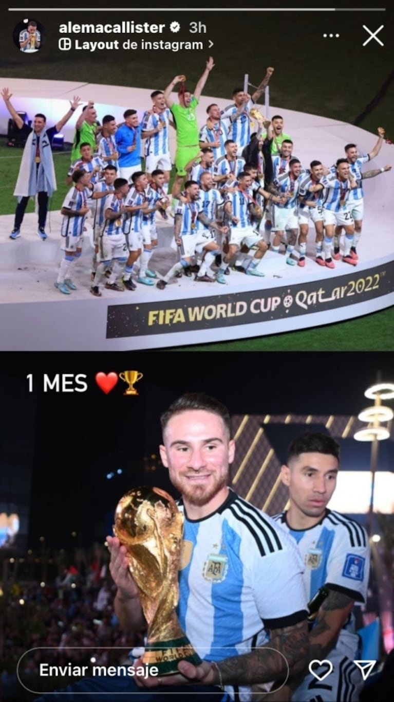 Se cumplió un mes del triunfo de la Selección argentina en el Mundial Qatar 2022 y algunos de los futbolistas recordaron este momento en sus redes sociales.