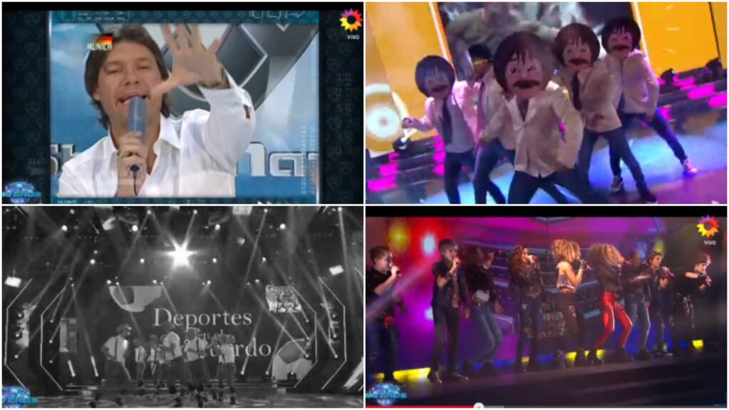 A eso se le sumó otro show a puro ritmo y color con jugadísimos pasos a cargo de los eximios bailarines, que deslumbraron con su talento mientras de fondo aparecían diferentes segmentos del conductor en sus comienzos en TV con las cortinas musicales que sellaron su etapa como el que sonaba en Ritmo de la noche.