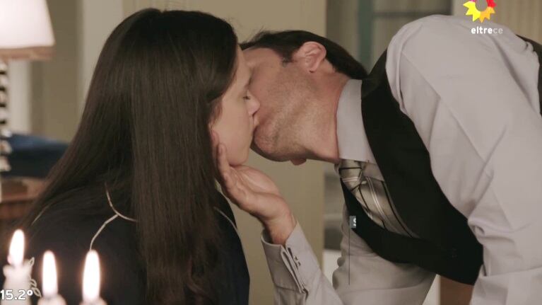 En el capítulo que se vio este jueves, el actor chileno arregla una cena a solas con su prometida en su casa. Es en ese momento que, tras notar que la joven tiene una mancha de vino en la boca, se acerca para expresarle sus sentimientos: "Le quedó un poquito de vio en la comisura del labio. Permiso, qué lindos labios. No hay una noche que no sueñe con ellos. Perdón la impertinencia, pero...", atinó a decir, antes de besarla tiernamente.