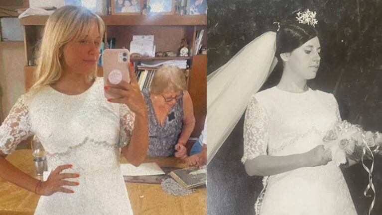Durante el fin de semana, la actriz disfrutó de su familia y, nostálgica, se probó una prenda muy especial ¿qué podría usar en su día especial? "El vestido de mi abuela", expresó la joven a través de sus stories de Instagram junto a una foto luciendo la prenda que usó la señora para caminar hacia el altar.