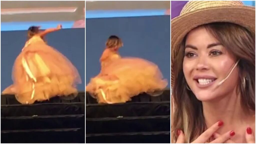 ¡Tropezón, caída y pose glamorosa! Mirá el blooper de Karina Jelinek en un desfile.