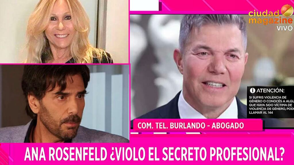 En diálogo con Flor de Tarde, el programa que conduce Florencia de la Ve por Ciudad Magazine, Burlando habló de la denuncia y la sanción que recibió su colega. "Toda denuncia que tenga un profesional es seria. Siempre los tribunales de disciplina están para atender a los afectados. En el tema de Ana, la denuncia vino de parte de un tercero, de un grupo de profesionales que entendió que había trasgredido ciertas normas éticas", comenzó argumentando.