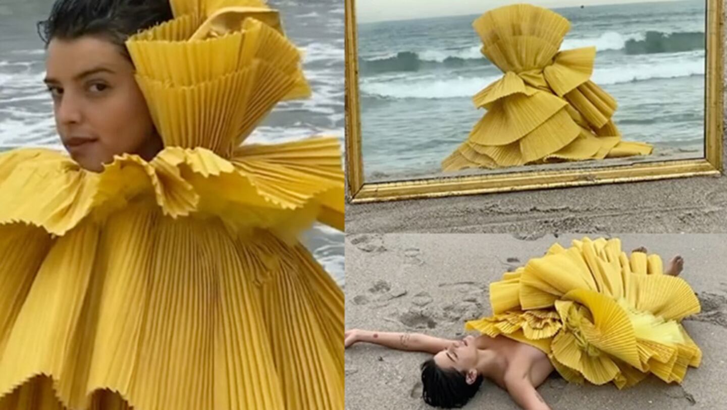 Siempre intentando volverse una con los espacios que habita, la actriz protagonizó un impactante baile a orillas del mar. Lo más impactante es que lució un espectacular vestido amarillo, una prenda de diseño única, que convierte el video en una pieza conceptual.