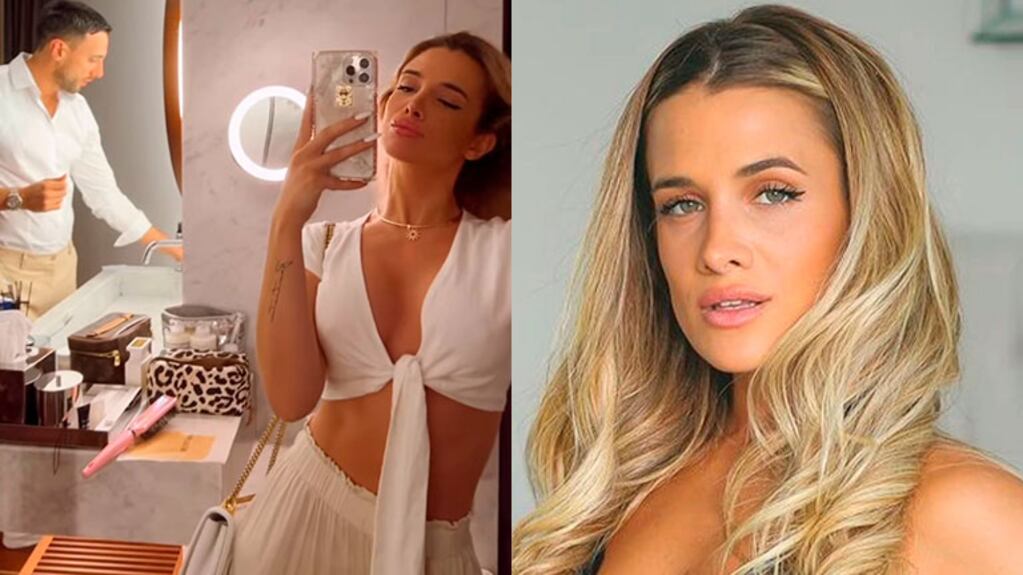 Camila Homs compartió un video junto a su novio, Carlos Benvenuto, preparándose para una cita romántica tras dejarle sus hijos a Rodrigo de Paul en España.