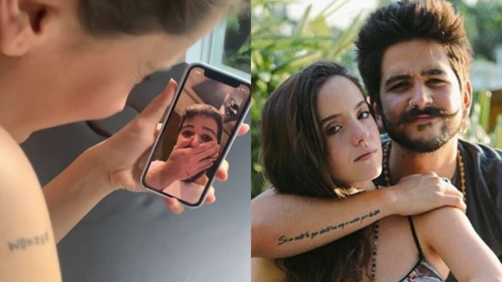 "Hace unas semanas la pulga me sorprendió con un tattoo con mi nombre", expresó Camilo en Instagram junto a divertidos emojis al pie del clip de la videollamada que jamás olvidará.