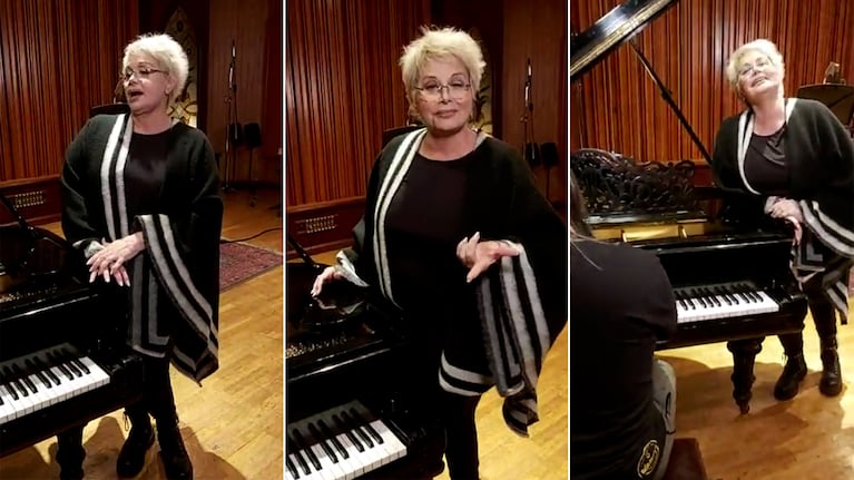 Súper contenta, la capocómica grabó la cortina musical del programa en el famoso Estudio Panda y en un momento de descanso, sorprendió a todos al cantar "Anclao en París, un clásico del tango. Tras romperla interpretando la canción que supo interpretar Carlos Gardel, el compositor Daniel Vila, que la estaba acompañando, se mostró tan conmovido por su talento que se levantó y la abrazó a más no poder.