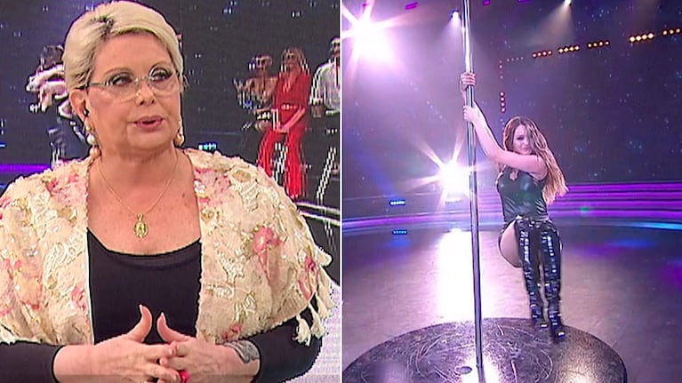 Y Barbieri evaluó el caño de Pampita, quien salió al ruedo sin ensayo previo: "La primera vez que quiere tocar el caño con la pierna, en la vertical, falla. Ahí le bajo un puesto... Y sin pensar que hace poco tiempo tuvo a una nena hermosa le pondría un 8".
