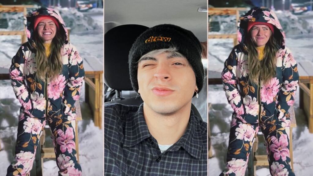 Junto al fotógrafo y director Thomas Raimondi, la expareja de Benjamín Vicuña y el "trapero" se están divirtiendo como nunca en Bariloche.