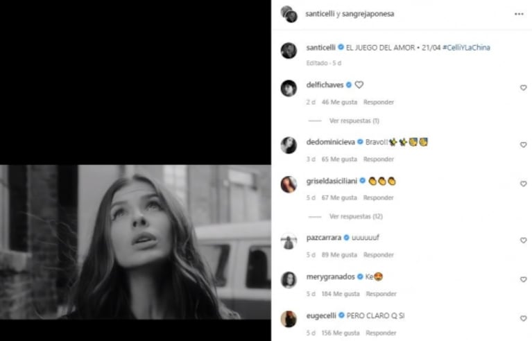 Para ese entonces, la actriz publicó un video en Instagram Stories anticipando su primer trabajo junto a Santiago Celli: "No les puedo poner el sonido, pero no puedo más con esta canción", explicó la actriz con un video mudo para generar expectativas.