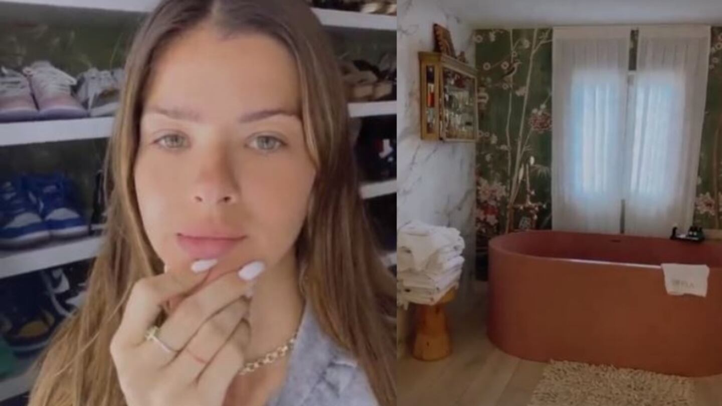 Desde las stories también, compartió imágenes de su baño, que está súper iluminado y tiene una bañera súper moderna y un ducha con ondas retro, además de un empapelado con grandes motivos de flores y vegetación.