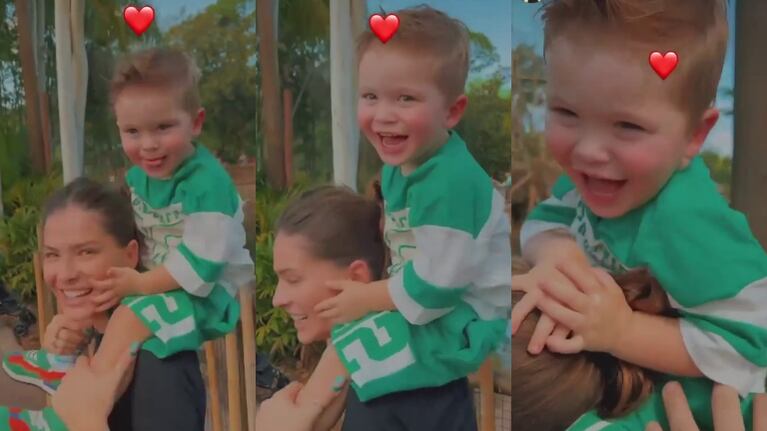 Desde allí, la actriz y cantante compartió algunos momentos de intimidad y enterneció a sus seguidores al plasmar en Instagram Stories un video en el que se la ve a pura risa con el menor de los pequeños a upa mientras se ríen en plena travesía.