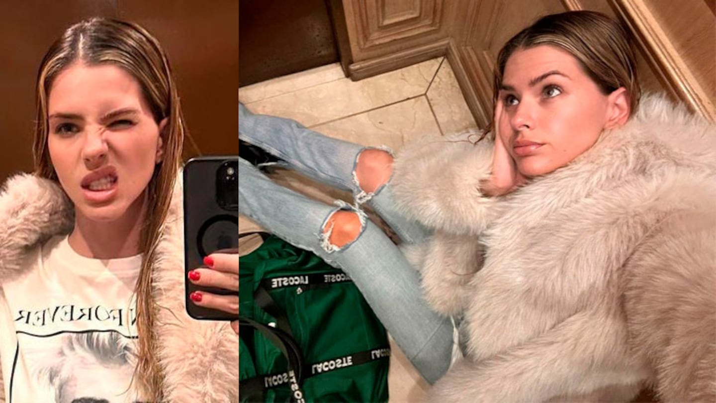 Por eso, la China explicó mientras se grababa frente al espejo del ascensor y se corría su camperón para que se vea que estaba en bata de baño y pantuflas: "No voy a hablar porque no me van a creer. Olvídense de la pinta".