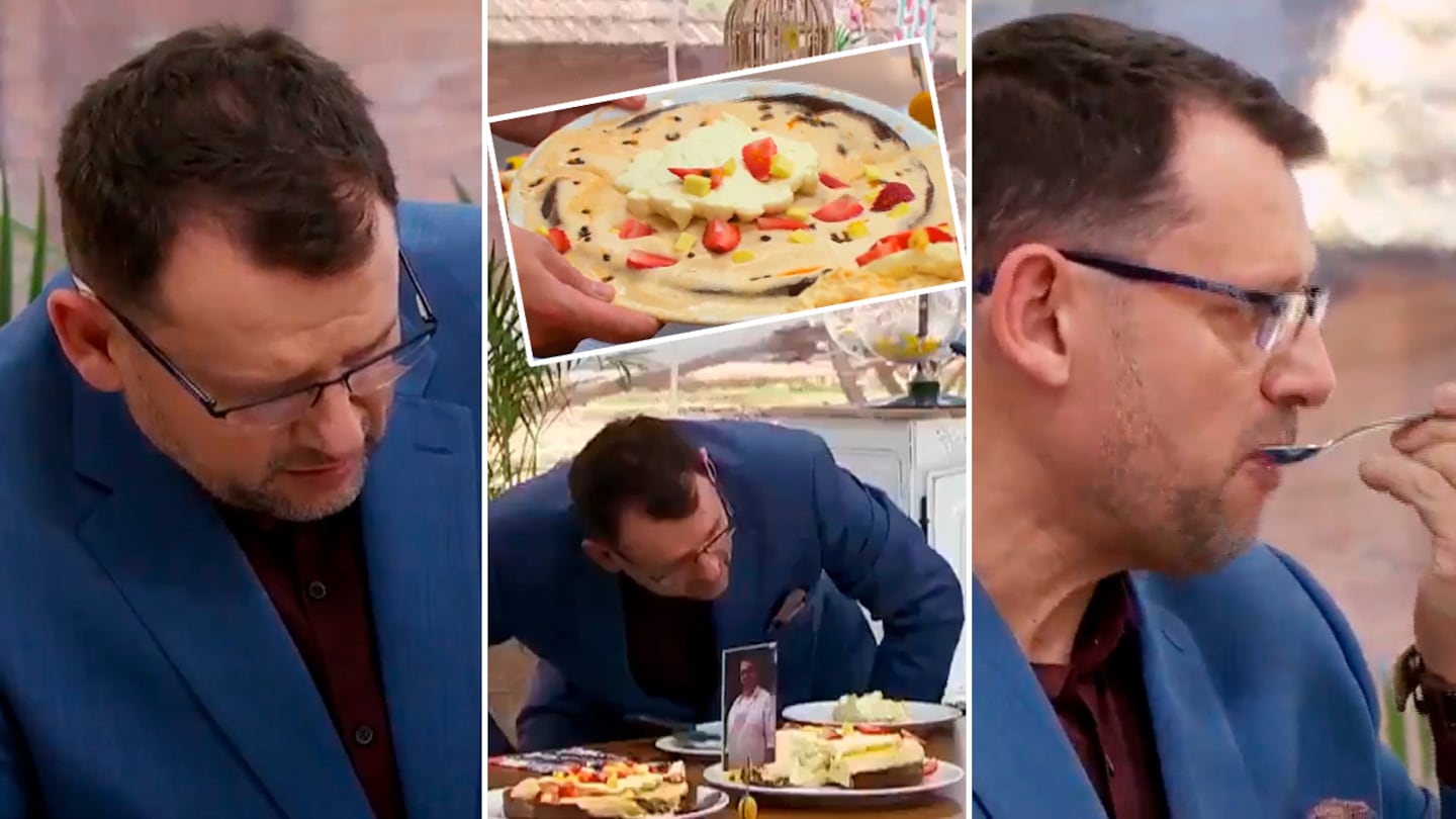 ¿Cómo fue? Con un gesto de desconfianza, Christophe se acercó a las tartas para examinarlas de cerca y, apenas las vio mejor, comentó su desconcierto con sus compañeros de jurado. “Está como abajo todo, ¿la dieron vuelta? Hay semillas abajo...”, comentó el chef, ante la mirada incómoda del participante.