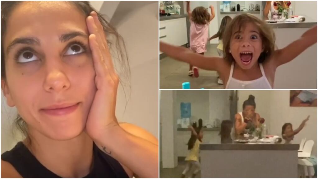 “¡No hay clases!”, grita una de las chicas. “¡Pijamada!”, agrega otra, sobre sus planes mientras se sacuden almohadas y siguen corriendo en camisón alrededor de la isla de la cocina. “Podemos hacer las bolu… que queramos”, se despacha una de las mellizas. “Joder todo. Podés romper todo, romper el techo, dormir lo que quieras”, suelta otra, risueña, mientras Cinthia Fernández termina el video con un comentario que podría ser el de muchos. “Mi cuarentena, ¿y la tuya?”, cierra Cinthia Fernández, poniéndole humor a su cuarentena con sus hijas.