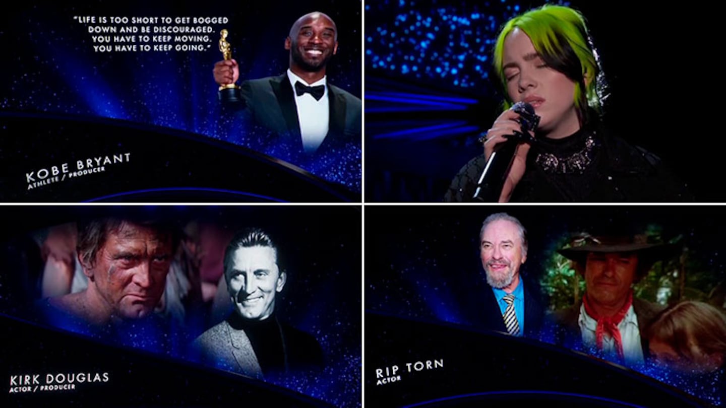 Lógicamente, las recientes muertes de Kirk Douglas y Kobe Bryant tuvieron un lugar destacado. Casi a último momento, la Academia de Hollywood debió agregar al icono del cine de Hollywood y al exbasquetbolista, ganador del Oscar al Mejor corto de animación en 2018.