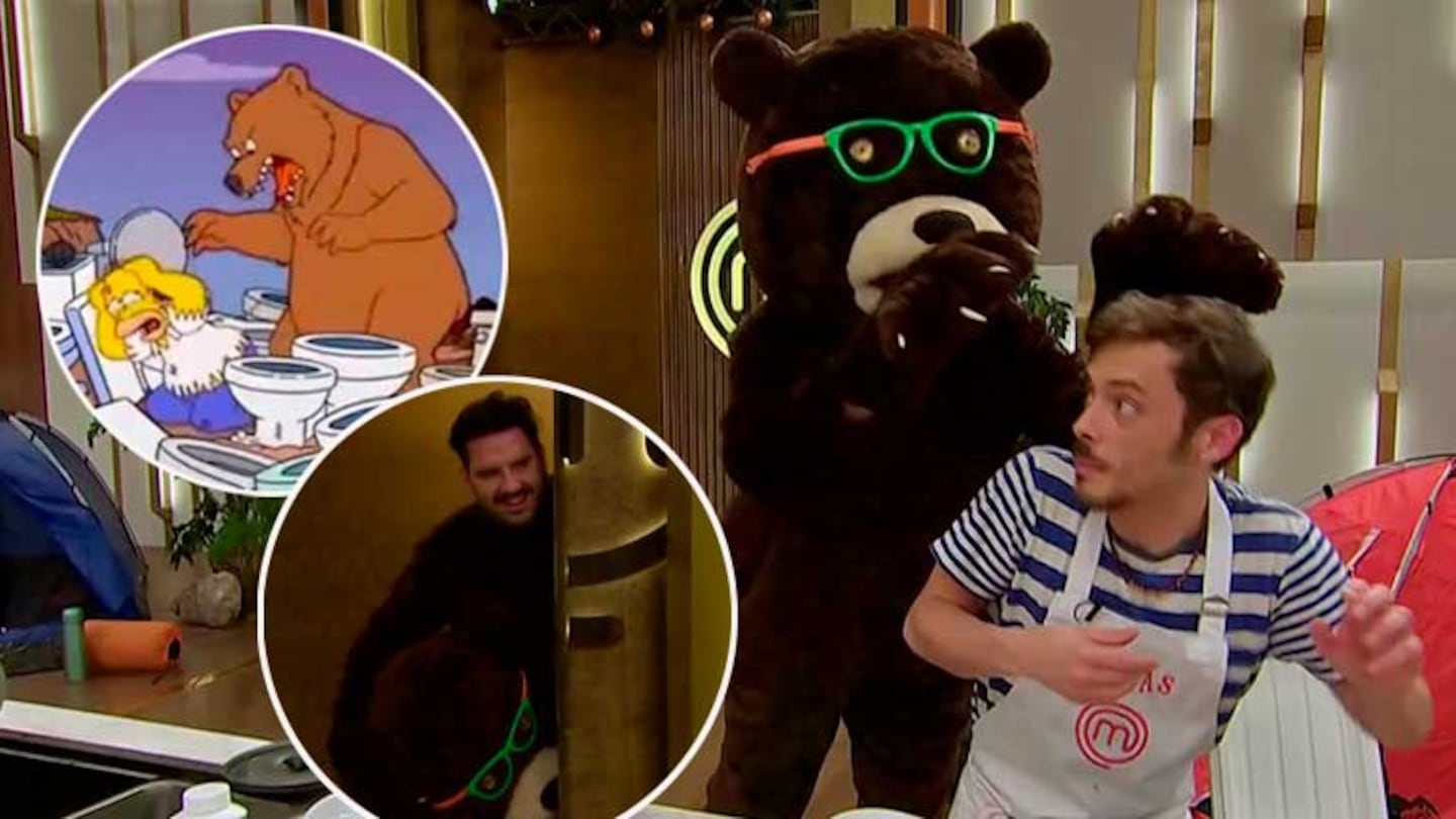 Damián Betular asustó a Tomás Fonzi disfrazado de oso en MasterChef Celebrity 3 y generó una montaña de memes: "Era gigante y con anteojos"