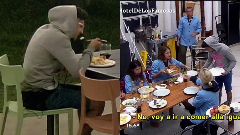 “No tengo ganas de comer acá, voy a ir allá al staff. No es con nadie, pero lo prefiero de verdad. No quiero ver a nadie”, cerró, al mismo tiempo que agarró su plato con comida y se apartó de los otros concursantes.